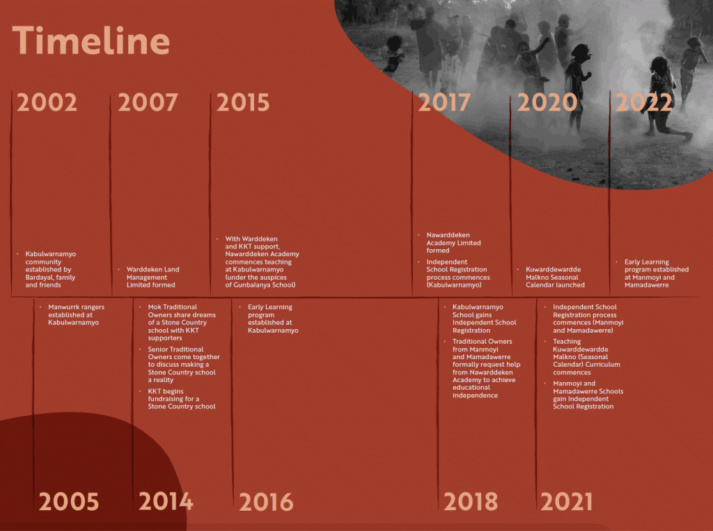 In 2014, community members and Elders sat down to talk about what they wanted a school to deliver for the young people of the Stone Country, and the unique opportunities establishing a school on Country presented. These conversations, community consultations and workshops led to the development of Objectives and Guiding Principles that reflect the aspirations of Nawarddeken Traditional Owners. They provide a clear foundation for what the Nawarddeken Academy will achieve.